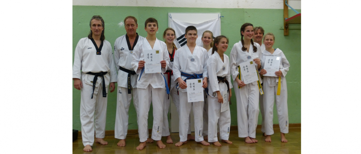 Zu Beginn der Prüfung hielt Heinrich Magosch zur Freude aller einen einstündigen Lehrgang für die Sportler ab. Dabei legte er seinen besonderen Schwerpunkt auf die Anwendung der Taekwondo-Grundtechniken in der Selbstverteidigung (SV). Zudem standen Grundlagenausdauer und Durchhaltewilllen, was auch wichtige Faktoren in der SV sind, auf dem Programm. Großmeister Heinrich Magosch versteht es wie kein anderer Zuschauer und Eltern bei seinen Lehrgängen miteinzubeziehen, so dass auch diesmal eine tolle Stimmung im Trainingsraum entstanden ist. Bei der gleich anschließenden Prüfung zeigten die Sportler, dass sie zwar bei unterschiedlichen Vereinen trainieren, aber dennoch einen ähnlichen Trainingsstil aufweisen. Zitat Prüfer: „anders und doch gleich“. Alle Prüflinge konnten mit ihrer Leistung überzeugen und nach gut zweieinhalb Stunden ihre Urkunden entgegennehmen. Bevor die Trainer allen Prüflingen zur bestanden Gürtelprüfung und damit zu Ihrer neuen Gürtelfarbe gratulierten, entlockten die erfahrene, tolle Stimmung in Verbindung mit den überzeugenden Leistungen der Sportler bei den Trainern den Wunsch nach einer Wiederholung einer gemeinsamen Prüfung von AATC und ATS.